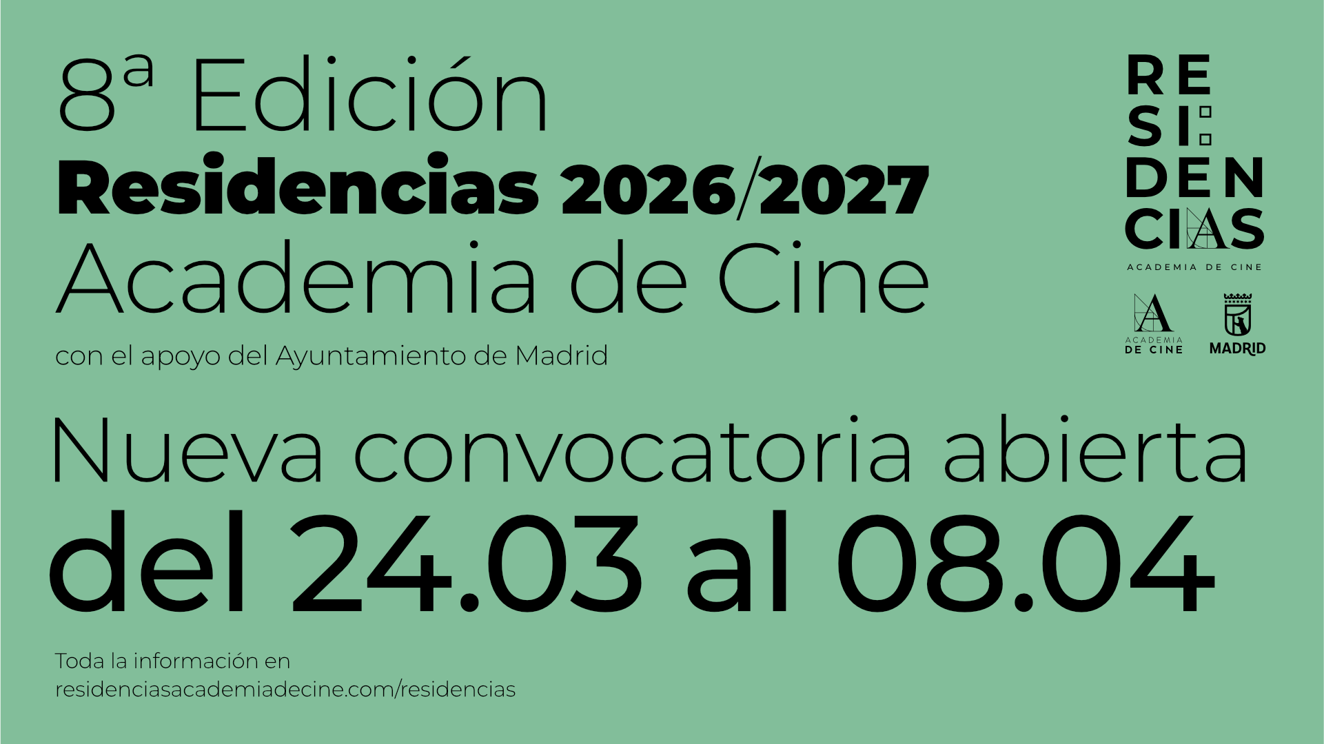 Hoy 24 de marzo, a las 16:00 horas, se hará un Q&A en la Academia, presencial y online, para resolver dudas sobre ambas convocatorias. Para ello, será necesario reservar plaza en residencias@academiadecine.com.